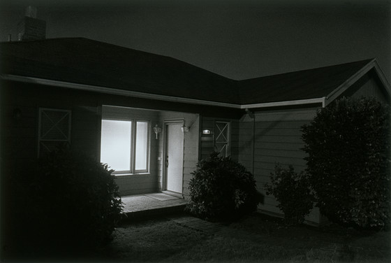 Descriptive: (L shaped view of house, light in window, #40 house address light up on left side)