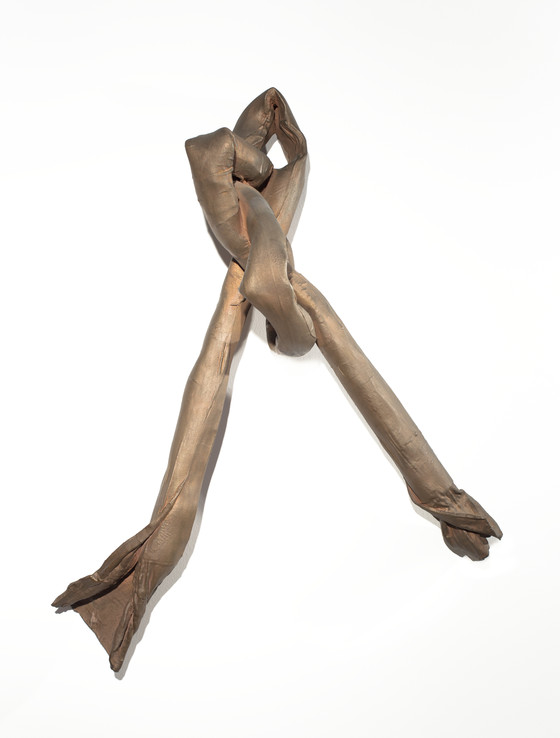 Copper, zinc, tin, liquid metal in plastic medium and gesso on plaster, cotton bunting, aluminum screen