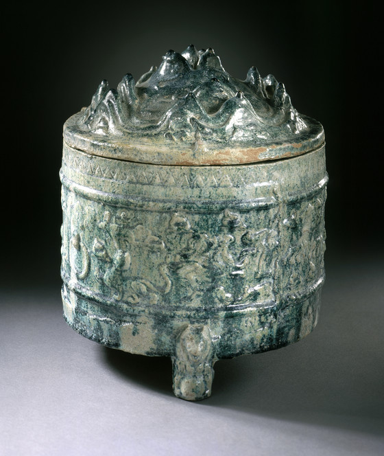 Lidded Jar in the Form of a Mountain Range (Boshan Guan) with Three Feet in the Form of Bears