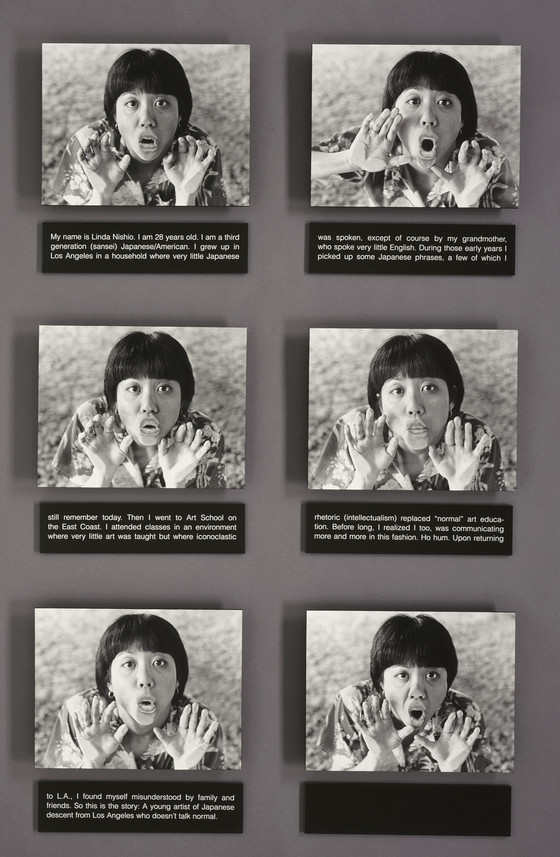 Six gelatin-silver prints, with six accompanying text panels; glass sheet