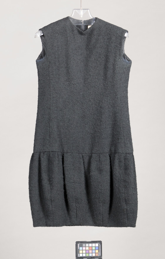 Dress: Wool plain weave (bouclé); Jacket: Wool plain weave (bouclé), buttons