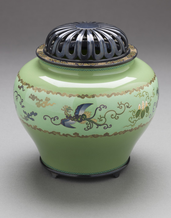 Cloisonné enamel with gold wire and shakudo lid and mounts