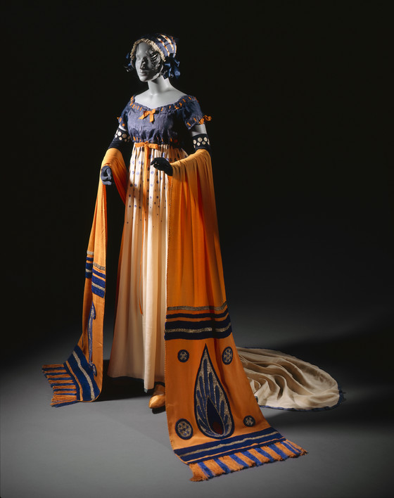 Woman's Ensemble (Bonnet, Dress, and Handkerchief), Costume for Ganna Walska as Floria Tosca in 'Tosca'
