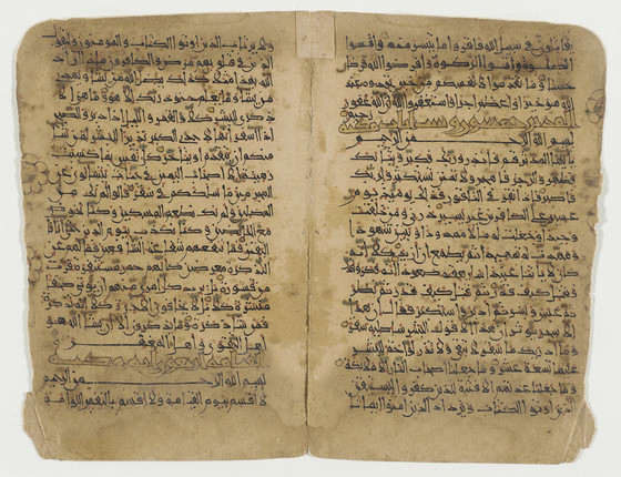 Double page from a Manuscript of the Qur'an (73:21-74:32, 74:32-75:3)