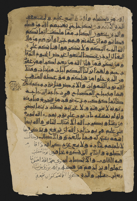 Two pages from a manuscript of the Qur'an (18:84-99 [...100]; 18:101-110, 19: 1-4 [...6]) and (24:32-39; 24:39-49)