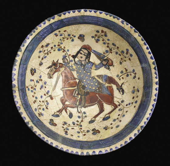 Fritware, underglaze-painted and overglaze-enameled (mina’i)