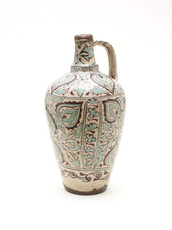 Earthenware with white slip, underglaze-painted