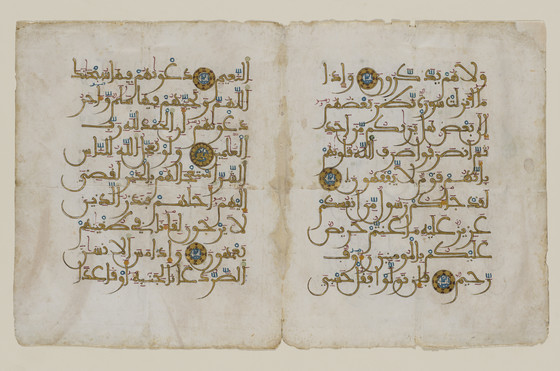 Double page from a Manuscript of the Qur'an (9:123-126; 9:126-129 and 10:9-12; 10:12-14)