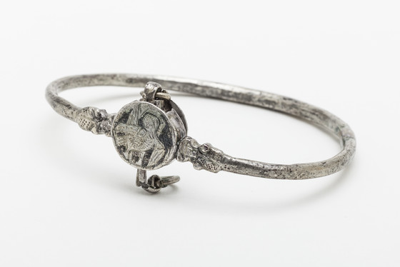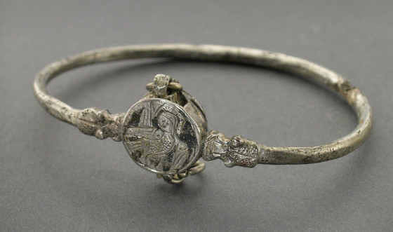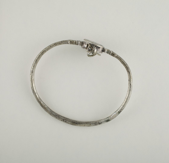Silver, fabricated from sheet and round wire, decorated with bitumen-highlighted incising