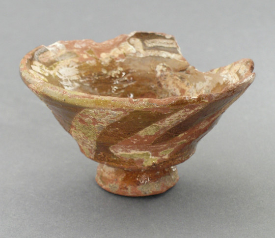 Earthenware, brownish-red slip, slip-painted and glazed