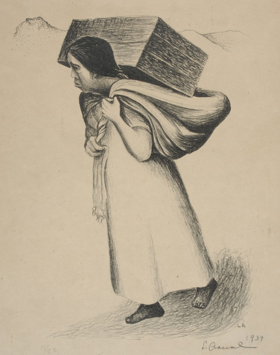 Woman with Rebozo Carrying a Box (Mujer con rebozo con caja a cuestas)