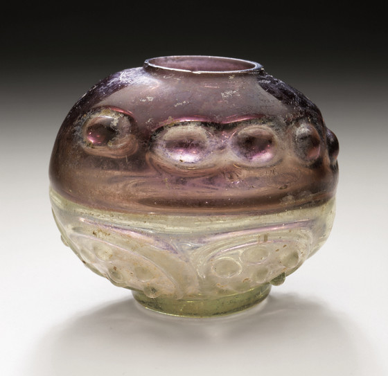 Glass, blown in two parts with impressed decoration