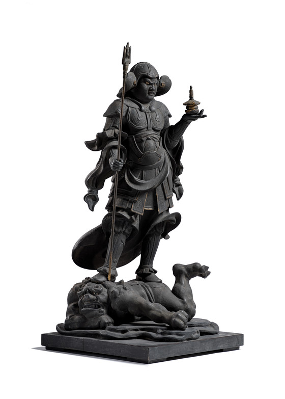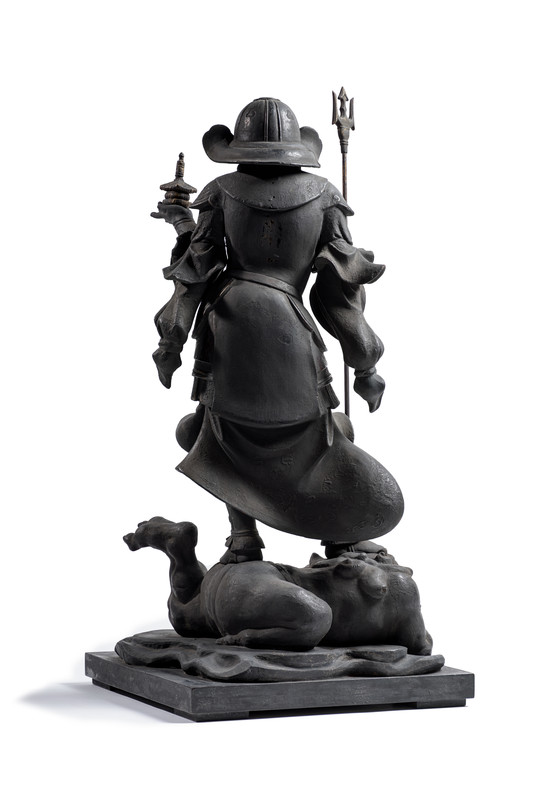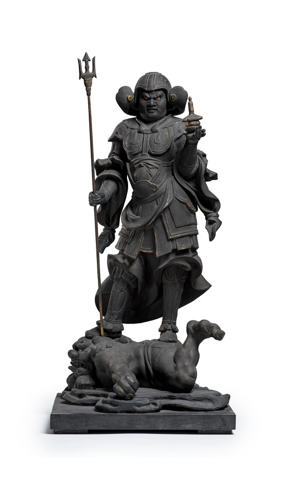 a) Figure: 22 x 12 x 5 1/2 in. (55.88 x 30.48 x 13.97 cm); b) Helmet: 3 3/4 x 6 x 5 in. (9.53 x 15.24 x 12.7 cm); c) Spear length: 21 7/8 in. (55.56 cm); c) Spear width: 1 1/2 in. (3.81 cm); d) Demon: 8 x 13 1/4 x 13 1/4 in. (20.32 x 33.66 x 33.66 cm); Overall: 27 1/2 x 13 1/4 x 13 1/4 in. (69.85 x 33.66 x 33.66 cm)