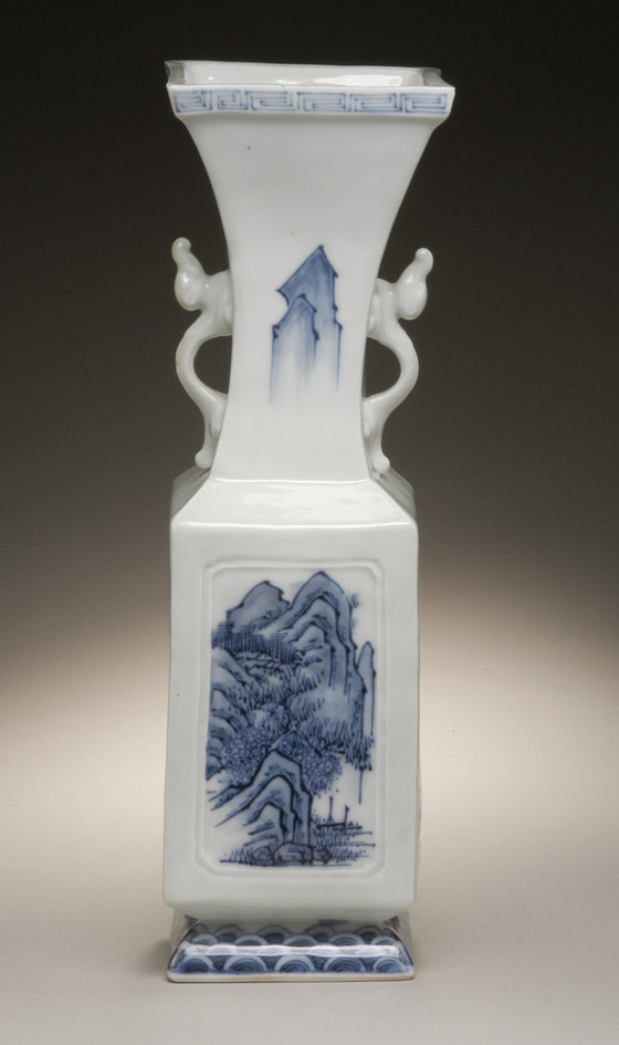 Alternate Title: 平戸三河内焼き染付山水文手付四角花瓶