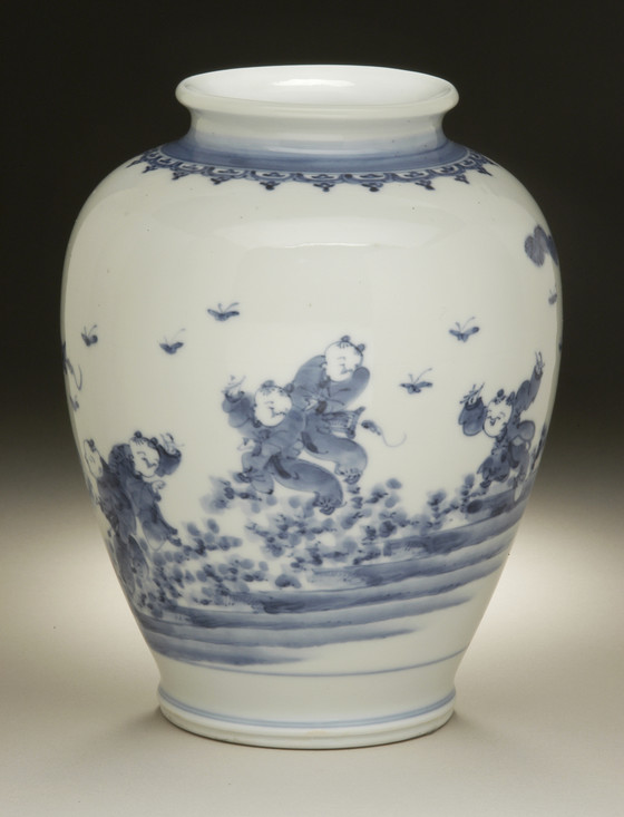 Alternate Title: 平戸三河内焼染付七人唐子文花瓶