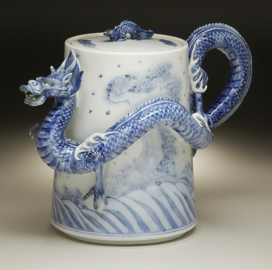 Alternate Title: 平戸三河内焼染付波文龍彫水注