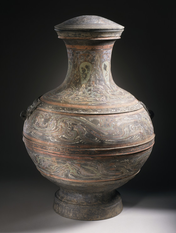 Lidded Funerary Jar (Hu) with Cloud Scrolls