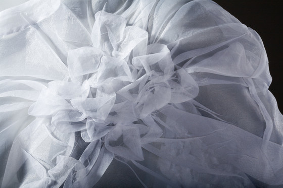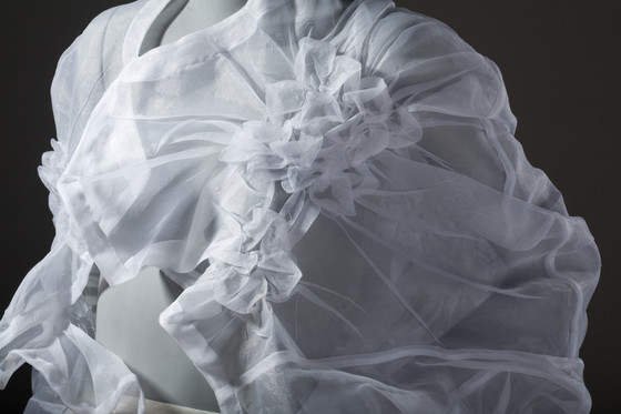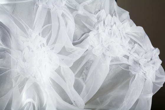Polyester plain weave (organdy); gathered, stitched, and heat- and pressure-set