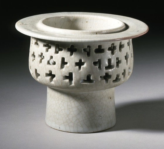 Wheel-thrown porcelain with pierced decoration and clear glaze