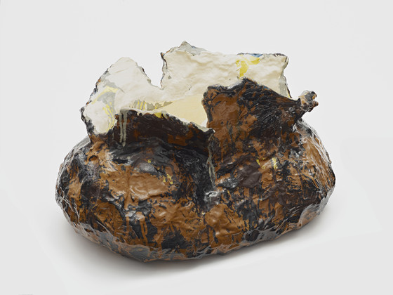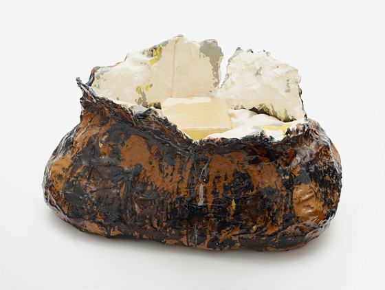 Burlap soaked in plaster, painted enamel, jersey stuffed with kapok
