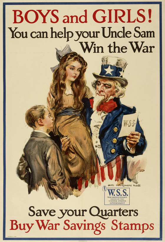 Boys and Girls! You can help your Uncle Sam Win the War. Save your Quarters. Buy War Savings Stamps