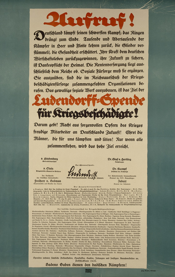 Alternate Title: Aufruf! Ludendorff-Spende für Kriegsbeschädigte!