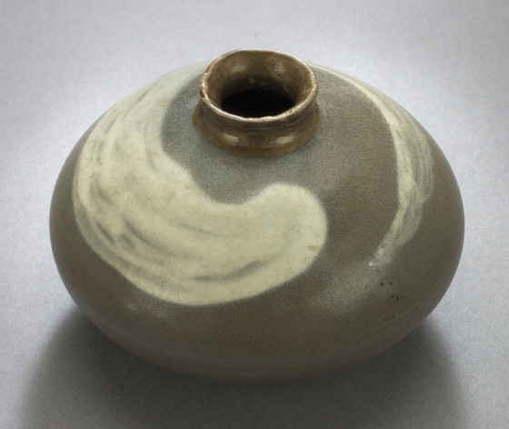 Wheel-thrown stoneware with underglaze slip painted decoration and buncheong-type glaze