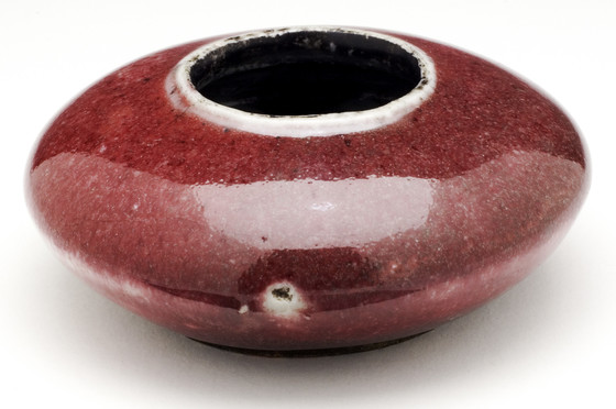 Wheel-thrown porcelain with copper painted decoration under clear glaze