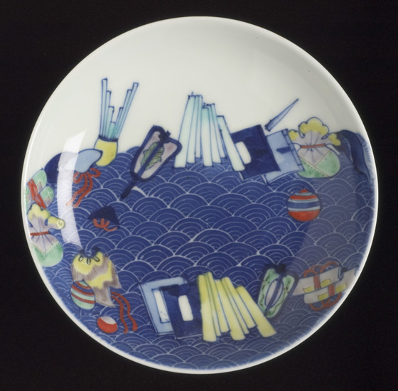 Alternate Title: 肥前焼色絵高台波に宝物文小鉢