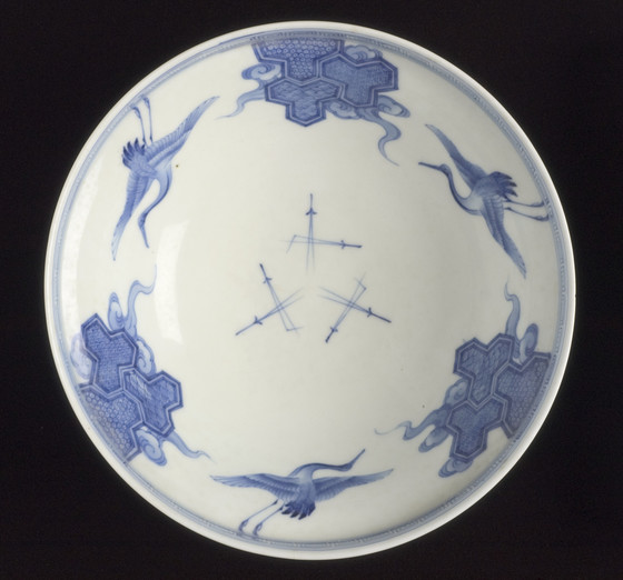Alternate Title: 平戸三河内焼染付三鶴松葉亀の甲羅文皿