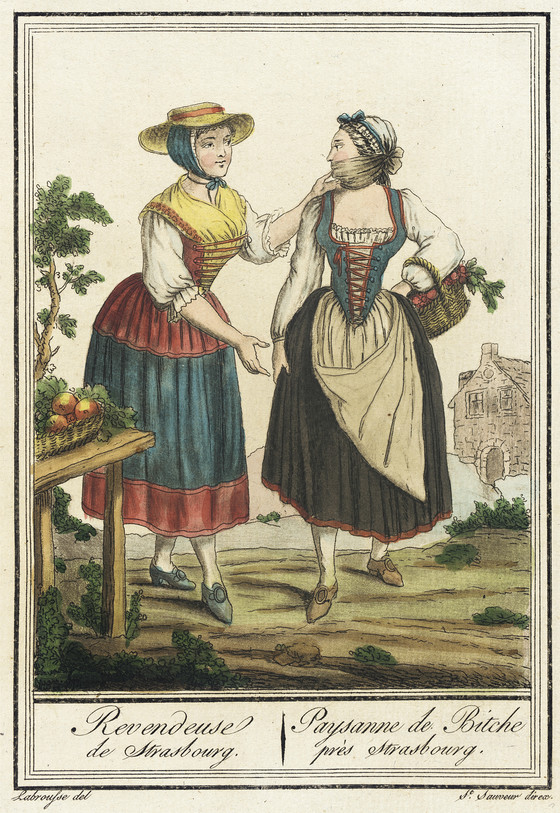 Costumes de Différent Pays, 'Revendeuse de Strasbourg/ Paysanne de Bitche près Strasbourg'