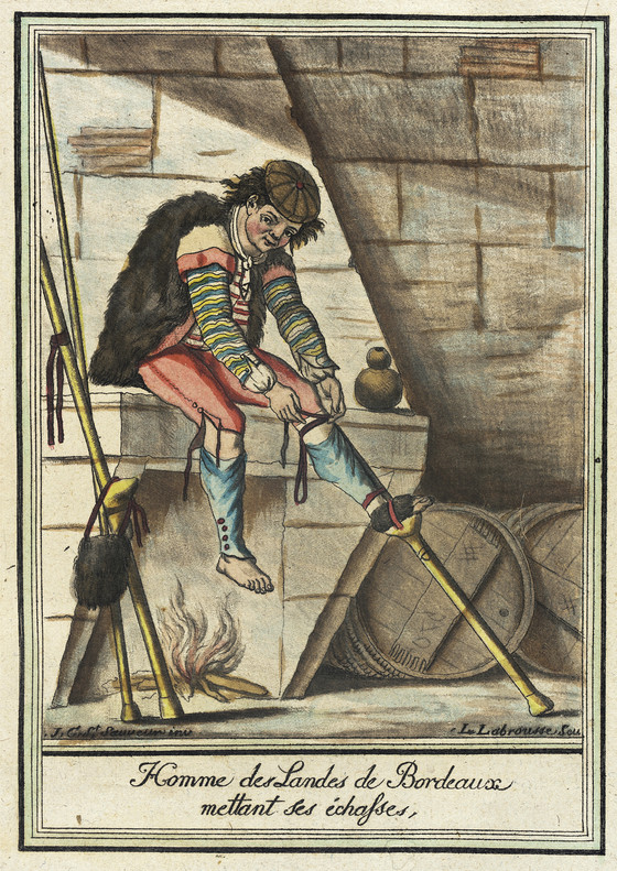 Costumes de Différent Pays, 'Homme des Landes de Bordeaux Mettant ses Échasses'