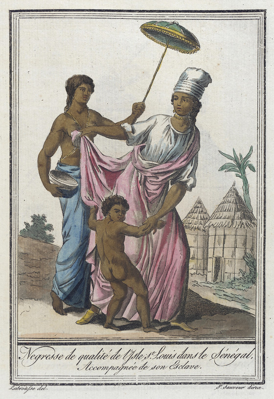 Costumes de Différents Pays, 'Negresse de Qualité de l'Isle St. Louis dans le Sénégal. Accompagnée de son Esclave'