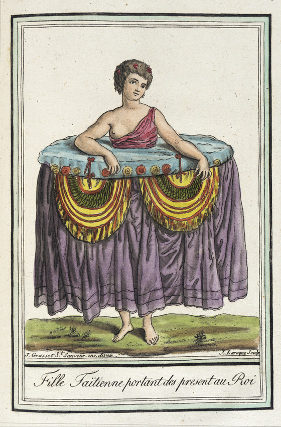 Costumes de Différents Pays, 'Fille Taïtienne Portant des Present au Roi'