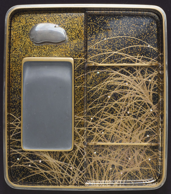 Lacquer with maki-e (sprinkled gold), mother-of-pearl inlay, silver
