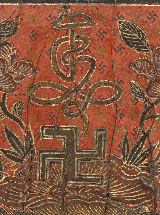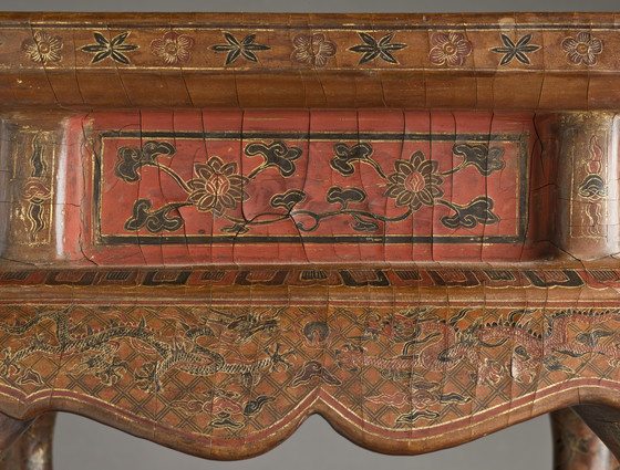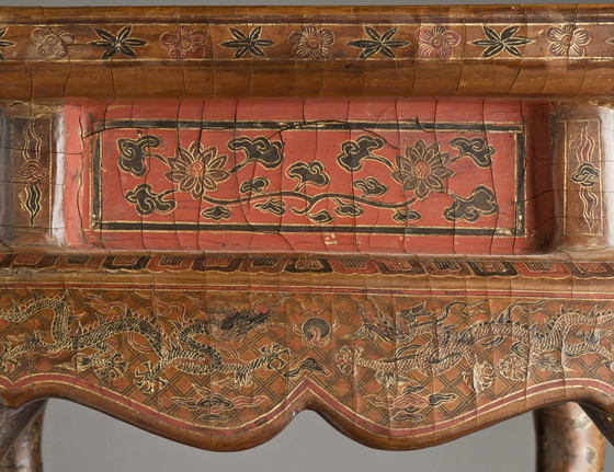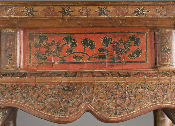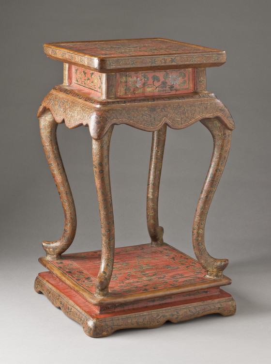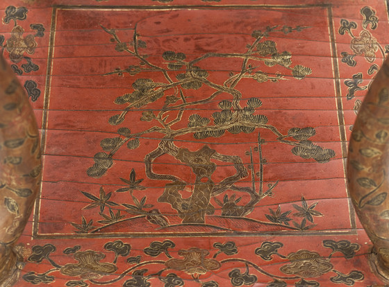 Red lacquer on wood core with engraved gold (qiangjin), and incised and lacquer-filled (tianqi) decoration