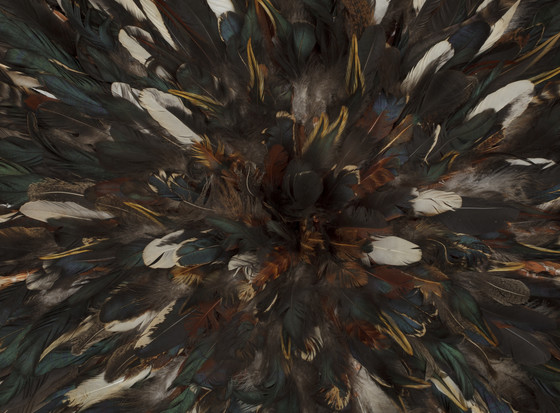 Feathers with cotton/polyester plain weave palm fibers, and bast fibers