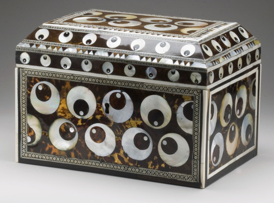 Tortoiseshell, mother-of-pearl, wood, ivory and bone inlay