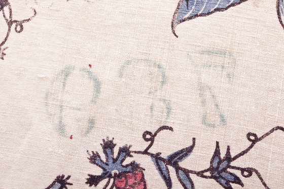 Cotton plain weave, mordant-painted and resist-dyed