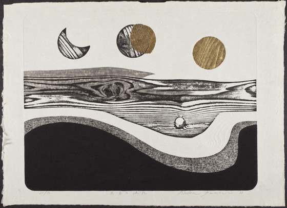 Woodblock print with gold leaf and embossing