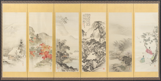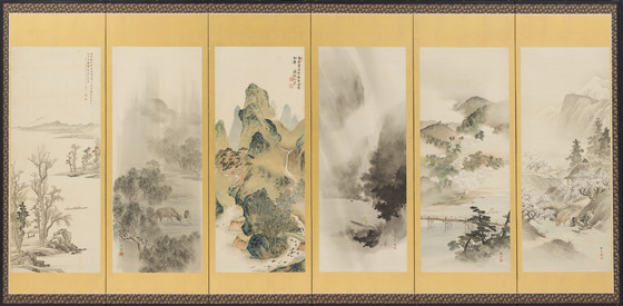 a-b) Screen (closed): 69 × 23 1/2 × 4 1/4 in. (175.26 × 59.69 × 10.8 cm) each