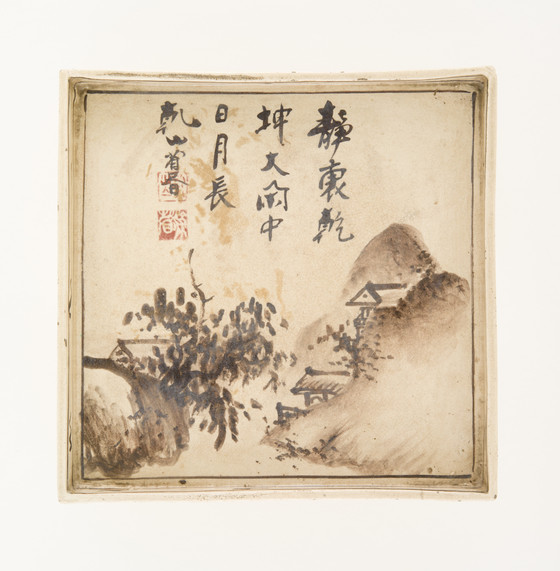 Square Dish with the Design of a Mountain Retreat