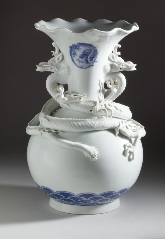 Alternate Title: 平戸三河内焼染付龍青海波文龍貼付広口花瓶