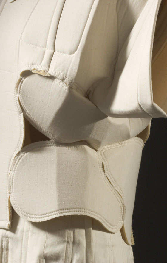 Jacket: cotton plain weave, polyurethane padding; skirt: cotton plain weave, plastic woven tape boning