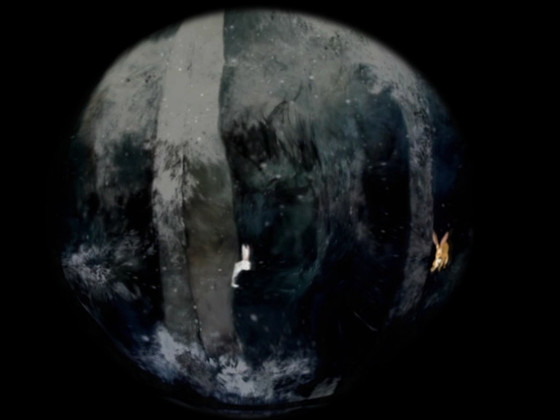 Projected animation and sound, in a steel well containing the projector and ventilation system, Plexiglas screen, water. Sound: Chopin Nocturne Op. 9 No. 1