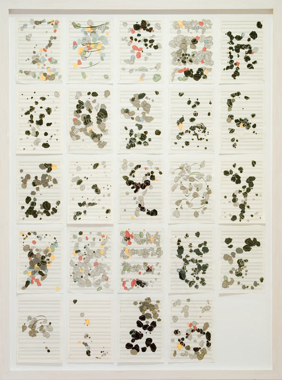 Twenty-four paper cutouts on paper