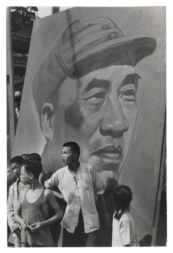 Cultural meeting at the Shanghai Canidrome. Huge portrait of General Chu Teh. 4 July 1949.