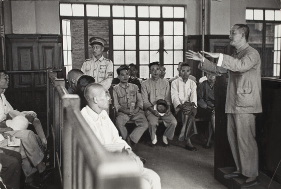 China (Court of Popular Just at Shanghai. The judge explains his sentence to the public since the new code of laws has not been published)