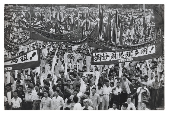 Citizens gather to hear the speech on the Taiwan crisis. Shanghai, September 1958