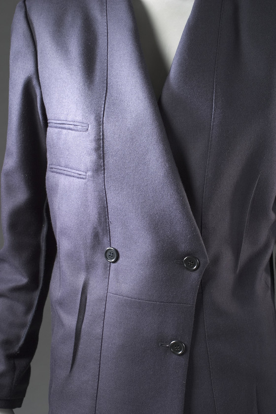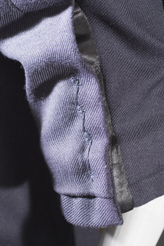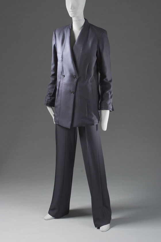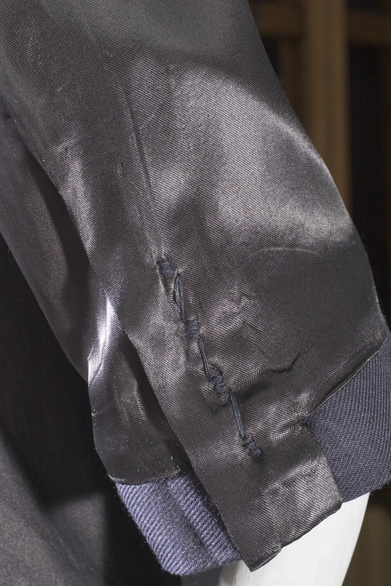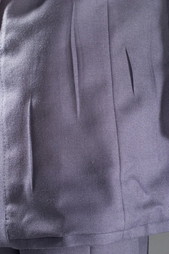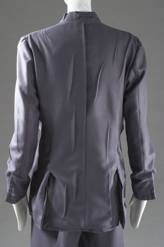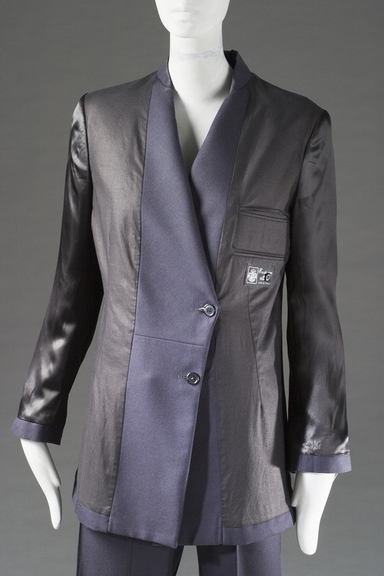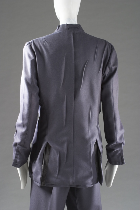 Reversible jacket: polyester/wool twill, rayon twill, polished cotton plain weave; pants: polyester/wool twill